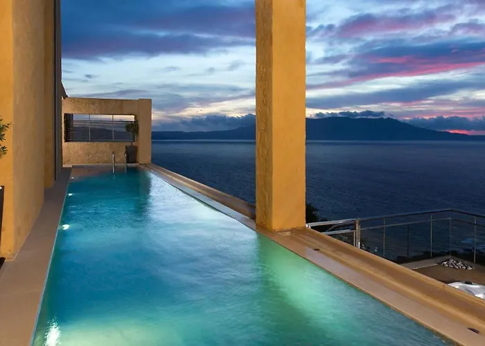 A 3 hálószobás Beachfront Ravdoucha Epavlis Eleni Villa - Pool, Hot Tub, Gym, Sauna, Private Parking, Wifi Hriszí Aktí Haniá jakuzzival és szaunával büszkélkedhet, emellett csaknem egy 10 perces kocsiútra található az olyan szórakozóhelyektől, mint a Kolymbari harbour. Az Aghia Marina közvetlen szomszédságra található 3 fürdőszobás villa hegyre néző terasszal büszkélkedik.